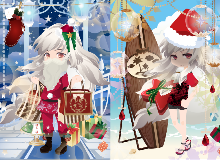 コーデお題「メリークリスマス」 お題2017 2017年12月24日 Comment:0 コノハさんでエントリーしました。 刀祭のXmasパーティではなく魔導学院の、ゆるっとしたパーティだと思ってコーデしました。 ミノルさんのお誕生日は新嘗祭で、手作りケーキ作る余裕とか無い分 Xmasに気合入れてミノルさんの為にケーキ焼くんじゃないかと思うのですが 妄想語りのみで形にならず申し訳ない…。 トナカイをサラジュさんに侍らせたかったのですがっ! トナカイに辿り着くまでのダイヤ(アトゲで例えるならGコイン)消費が厳しいから断念しようかと…。 ちょっと前に使い込んでしまいましたし、年始~春節祭が怖いので現在貯めモードなのです(ノд`) クリスマスBOX(4種・1ヶ120円)を1つ購入して、なにげに初チャージだったりします。 アイテム目当てというよりGooglePlayの100円クーポンの期限切れが気になったからなんですがねw さてセルフィでのクリスマスは… 方々に倣って刀祭Xmasイベのコーデを1枚に収めてみました。 7キャラも居たのか…ってまぁ自分の場合、ほとんどリサイクルみたいなものなんですが(´д`) コーデコンセプトはバラけましたが、ネタとしては食べ物(特にスイーツ)に偏っていたなと 並べてみてはたと気づきました。 それぞれにそれなりの思い入れがあるのですが 白樹の親父はきっとサンタ姿が似合いすぎるだろうwwと 真っ先にプランが決まったので特に推しておきます。 前回の南半球クリスマススタイルと比較してみてください← (続き書く気になったので追記) サラジュと紅樹は、白樹に合わせてトナカイ風コーデ。 クリスマスを知らない双樹にサラジュさんがプロデュースしたのです。 紅樹の手にしているケーキは胡蝶の君への特別製だったりするのですが 果たせて渡せたのかな…?(疑問形w) ウィレンは全く想像つかなかったので、冥緋ちゃんに全面的に乗っかりました。 (DMでご提案いただいて…本当ありがとうございました) でも紅樹と違って手料理に目覚めることはなかった…w 大好きなカテリーナお姉様に対しても、買った方が断然おいしいという考えだと思われ(´д`) 真鶴は中の人がこい断ちさんに介抱される気満々でした← 実際にそのように合わせていただいてご馳走さまでした\(^o^)/ 足パーツが、椅子とポーズの組み合わせ次第で座っているように見えるんじゃないか? というのにこだわったコーデでした。 コノハさんは…実は中の人同士連絡ついてないのですが 花蘇芳ちゃんと一緒に楽しんでいる体で想像させていただきました。 魔導学院メンバーは、魔導学院のXmasパーティもあるから(欲張り) 食べすぎに注意ですよっ…! 九条は天にも昇る気持ちを表現してみました(*'v'*) …と言うとカッコイイですが、天使コーデでいく!と早々に決めていたものの ネタとしてなかなか思い至らず最後まで残ってしまっていました…。 なお九条の頭はXmasの飾りではありませんからねっ! ひっそりヤヒコ君にネタにされていて本望でしたw