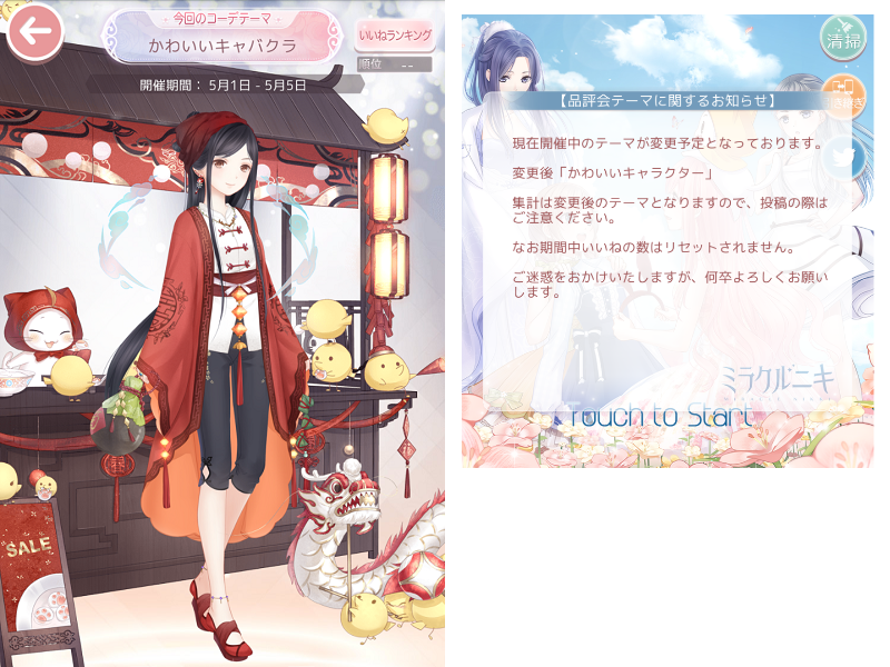 コーデテーマ「かわいいキャラクター」 お題2018上 2018年05月01日 Comment:0 … 何やってるんですかミラクルニキさん。 どうやったら「キャラクター」と「キャバクラ」を間違えられるんだ? あぁ予測変換間違いですか?怖いですね\(^o^)/ っていや、もっとちゃんと確認しましょうよ…ww 「かわいいキャラクター」のつもりで ピーヨとサラジュさん一択…!と思ってコーデしたのですが 「キャバクラ」だとすると、ソコに行っているサラジュさんという事になっちゃう…! あいや~!と叫びながらネタとして美味しいと思った残酷な中の人← サラジュ「キャバクラ…とは一体、何の事でしょう?」(´・_・`) 中「…妓楼のようなものです」 サ「!?そのような所行きたくありません! 私には心に決めた人が居るのですから困りますっ!」(;゚д゚) 中「もう少ししたらキャバクラからキャラクターに変わるから、そのまま待っててください」 サ「ドロシー、すみません。ドロシーっ!」(ノД`)・゜・。 キャバクラ品評会場にサラさんを放置して、中の人ミラクルニキからログアウト← 面白ハプニング提供ありがとうございましたぁっヽ(゚▽゚)ノ さてセルフィでのかわいいキャバクラキャラクターは… サンリオキャラ(コラボ中)に匹敵するウチのキャラと考えるなら サラジュさんのメインマスコットキャラ、獏のもも・クロでしょ! 懐かしいパロディ画を掘り起こしてきました← (ロゴは無料のデズニー風フォントを使って文字入れ) そして擬人化ボツコーデをペタリ。 マンボーフェイスがソックリよねwと真っ先に思ったのですが アレコレいじっているうちに、ショップ整形の可愛さを再認識。 マンボーフェイスはご応募あるかもしれない…と思って引っ込めたのですよね。 企画のまとめ画像は…まだ手つかずです。 まったりとお待ちくださいませ~。