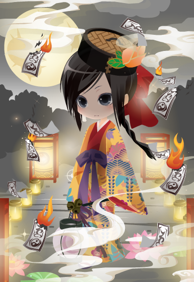 コーデお題「お盆」 お題2017 2017年08月12日 Comment:0 今イベントの、ちまき両手で持ったポーズアイテム使ってお供え物持っているようにしたくて… そうすると半袖~ノースリーブな衣装しか使えないですし(着物ボツ) 普通の洋服とも合いそうにありませんので、チャイナドレスでお参りとなりました。 中華圏のお盆(盂兰盆節)ですよ。中華圏の喪服は白ですよ。 日本だって昔、喪服といえば白(グレー)でしたが 明治時代以降の西洋化などから黒になっていったみたいなのですよ。 夫の葬儀に妻だけが白の喪服で"ニ夫は交えず"という意味を込めるというのもあるのですよ。 菊と香炉があるので別に黒に染まらずともご先祖参りだと伝わりそうですし 夏らしい色合いで良いんじゃないでしょうか(自己完結) そんなこんなで流行りの黒喪服ではありませんが 何故かTop10%前後で珍しく健闘中です。最新アイテムの力ですかねw 報酬の為に今回くらいはがんばってくれー!前回も結局 99%で撃沈したんだよorz さてセルフィでのお盆コーデは… まずはナスの牛が使いたくなり、日本のお盆を表現。 仏教の行事という事で地蔵菩薩もどきの九条を召喚しました。 一休さん(アニメ)の恰好をさせたくなりましたよ。 死者をお迎えする行事といえば、ウィレンは欠かせない…! 道教においても「中元節」という、同様の年中行事がある というか盂蘭盆会の方が後発らしいですな(ウィキペディア参照しながら) 日本でも中華圏でも、道教の中元節(お中元)と中国仏教の盂蘭盆会(お盆)が習合して 今の習慣となっているようです。 う~ん、伝統文化って奥深い。 ググって俄か知識仕入れながらコーデを考えていくのが楽しいのです。