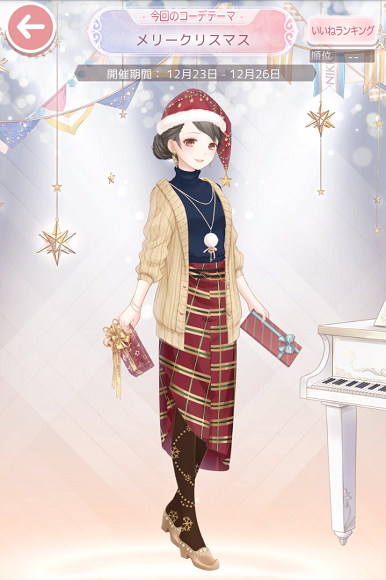 コーデお題「メリークリスマス」 お題2017 2017年12月24日 Comment:0 コノハさんでエントリーしました。 刀祭のXmasパーティではなく魔導学院の、ゆるっとしたパーティだと思ってコーデしました。 ミノルさんのお誕生日は新嘗祭で、手作りケーキ作る余裕とか無い分 Xmasに気合入れてミノルさんの為にケーキ焼くんじゃないかと思うのですが 妄想語りのみで形にならず申し訳ない…。 トナカイをサラジュさんに侍らせたかったのですがっ! トナカイに辿り着くまでのダイヤ(アトゲで例えるならGコイン)消費が厳しいから断念しようかと…。 ちょっと前に使い込んでしまいましたし、年始~春節祭が怖いので現在貯めモードなのです(ノд`) クリスマスBOX(4種・1ヶ120円)を1つ購入して、なにげに初チャージだったりします。 アイテム目当てというよりGooglePlayの100円クーポンの期限切れが気になったからなんですがねw さてセルフィでのクリスマスは… 方々に倣って刀祭Xmasイベのコーデを1枚に収めてみました。 7キャラも居たのか…ってまぁ自分の場合、ほとんどリサイクルみたいなものなんですが(´д`) コーデコンセプトはバラけましたが、ネタとしては食べ物(特にスイーツ)に偏っていたなと 並べてみてはたと気づきました。 それぞれにそれなりの思い入れがあるのですが 白樹の親父はきっとサンタ姿が似合いすぎるだろうwwと 真っ先にプランが決まったので特に推しておきます。 前回の南半球クリスマススタイルと比較してみてください← (続き書く気になったので追記) サラジュと紅樹は、白樹に合わせてトナカイ風コーデ。 クリスマスを知らない双樹にサラジュさんがプロデュースしたのです。 紅樹の手にしているケーキは胡蝶の君への特別製だったりするのですが 果たせて渡せたのかな…?(疑問形w) ウィレンは全く想像つかなかったので、冥緋ちゃんに全面的に乗っかりました。 (DMでご提案いただいて…本当ありがとうございました) でも紅樹と違って手料理に目覚めることはなかった…w 大好きなカテリーナお姉様に対しても、買った方が断然おいしいという考えだと思われ(´д`) 真鶴は中の人がこい断ちさんに介抱される気満々でした← 実際にそのように合わせていただいてご馳走さまでした\(^o^)/ 足パーツが、椅子とポーズの組み合わせ次第で座っているように見えるんじゃないか? というのにこだわったコーデでした。 コノハさんは…実は中の人同士連絡ついてないのですが 花蘇芳ちゃんと一緒に楽しんでいる体で想像させていただきました。 魔導学院メンバーは、魔導学院のXmasパーティもあるから(欲張り) 食べすぎに注意ですよっ…! 九条は天にも昇る気持ちを表現してみました(*'v'*) …と言うとカッコイイですが、天使コーデでいく!と早々に決めていたものの ネタとしてなかなか思い至らず最後まで残ってしまっていました…。 なお九条の頭はXmasの飾りではありませんからねっ! ひっそりヤヒコ君にネタにされていて本望でしたw