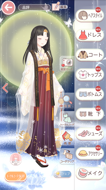 コーデお題「行く年くる年」 お題2017 2017年12月31日 Comment:0 本格的にコーデを考える前に、とりあえずエントリーしておけとブッ込んだ ウサギと戯れるサラジュさんが予想外に高順位で差し替えしづらくなったという。 ウサギがね…クルクル周っている可動品でかわいいのですよ…。 中の人はビミョウにウサギのデザイン気に入ってないのですが← サラジュさんと戯れさせると可愛いだろうなと思って獲った、今やってるイベント品です。 …って、今年も来年も卯年じゃないからエントリーは差し替えたいんですけど! まぁいずれ下がっていくだろうと思って控えているのが右のコーデです。 正式な巫女服は見当たらないので、なんちゃって巫女さん。 バックの後光がこれまた今日から始まったイベント品で 後光の類が大好きなワタシは真っ先に獲りに行ったのでした。 さてセルフィでの年末年始風景は… 「はぁ…まだ片付いてませんが少しだけ休憩させてください…。 そろそろどなたかに手伝ってもらいましょうかねぇ。 白蛇の精を呼ぶか…いや、双樹の方が体力がありそうで良いかも――」 よし味のあるコーデができあがった(*´∀`) セルフィの年末年始といえば… 珍しくPLイベントを一所懸命取り組んでおります。 正直そこまでアイテムに魅力を感じていないのですが← 今の報酬形式になって燃料が貯めやすくなったので、一度それを一気に使ってみようと ポイント報酬の前景を主目標としてコツコツやってます。 いつも半分ちょいくらいが関の山で、ポイント報酬全て獲る勢いって本当初チャレンジです。 ところでゴージャスガチャチケって、年始ガチャに使えるのでしょうかねぇ? それを楽しみにこれまでのPLイベントだって頑張ってきたのですが 例年、特別ガチャだから使えないという仕様でしたっけ? もしチケットが使えないなら…喪に服しそう(-_-;) まぁいずれにせよ水面下でコバンザメ活動せねばと思っているのですが← PLショップに超懐かしの過去ガチャ品が新カラーで登場して 喜び勇んで一気に入手したりしましたが…年始らしいコーデは年が明けてから考えます。 以上のように、良くも悪くも一途なところとか偏屈なところとか 自分のつまらなさや至らなさは重々分かっているつもりなので 来年もよろしく…なんて軽々しく言えないのですが まぁ琴線が合った時におもしろおかしくお付き合いいただければ幸いです。 当ブログではTwitterには吐けない毒…いや率直な所感を書いていきますよー\(^o^)/