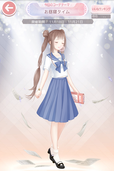 コーデお題「お昼寝タイム」 お題2017 2017年11月19日 Comment:0 授業中の居眠りを連想しつつの月野うさぎちゃんコス。 ニキのギャラリーで時々セーラームーンのコスを目にするので 自分も挑戦してみたくなったのでした。 お顔にある丸はふうせんガムなのですが、拡大しないと分からないよねと 鼻ちょうちんのつもりで使いました。 …なんて想像したのは自分だけなのかと思うくらい類似コーデが見受けられず 順位は苦戦しておりますorz さてセルフィでのお昼寝コーデは… 諜報活動(延いては暗殺)を稼業としている芙蓉サン(大和乱戦)なら 昼夜が逆転して昼に寝る事も多そうです。 って説明しないと、コーデだけではサッパリ分からないですよね…。 難しいテーマだなと思いました。