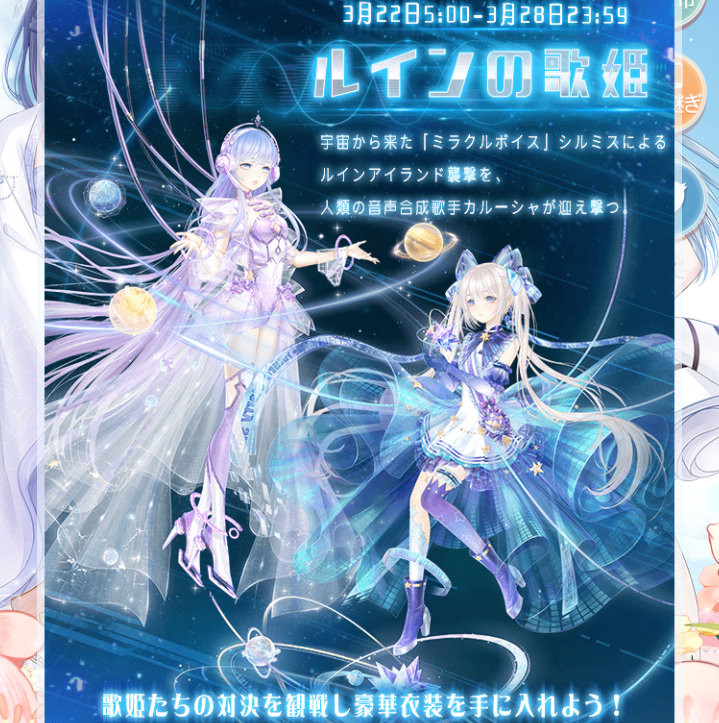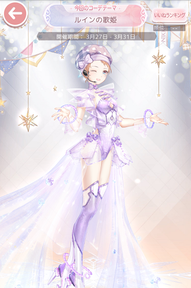 コーデお題「ルインの歌姫」 お題2018上 2018年03月28日 Comment:0 …というイベントそのままのコーデお題です。 ミラクルニキにおける「ルイン(アイランド)」とは、↑のような 近未来的コーデの事なんですよね。 あまり興味のないジャンルなのですが 最も汎用性のある、惑星や星モチーフのアクセサリがコンプ特典(-_-;) まぁ今イベントは片方だけに集中すれば安上がりだしな…と思って 左のコーデをコンプしておきました。 ひょっとしたらうる星やつらコスプレ(ランちゃん)に 使えるかもしれないと思ったので左にしました。 そのくらい往年のSFアニメに出てきそうなデザイン…と感じるのが 懐古趣味的なワタシとしてはちょっと好きですw 右のデザインは今流行している近未来系デザイン…つか初○ミ○リスペクトだよな。 そんなこんなを踏まえて自コーデをお披露目。 左の方は、恐らく人造人間っぽいものを目指したオリジナルコーデですね。 いやもっとイベントで得たアイテムを組み合わせようと試みたのですが 互換性は著しく低くて難航…。 そして案の定票の伸びは悪いというw 票が伸びる確率を上げようと、右の第二コーデ登場。 打算目的なので安易にコンプ特典のポーズ付ドレスを使ってみます← 確かにトータルコーデする手間が省けて時短になりますし 見栄えも良く、非常に効率的ですよね。 同じデザインのものを、セットでもバラでも楽しめるというのが ニキのいいところではないかと思います。 蛇足。 別売りの背景が、そこまで個性的でなく使いやすいなと(*´∀`) ドロシー嬢が自コーデで、サラジュさんはAltoroseさんの過去コーデをお借りしました。 イベントコーデの右の方は本当、ドロシー嬢の為に髪だけ取ったよ真っ先に…w