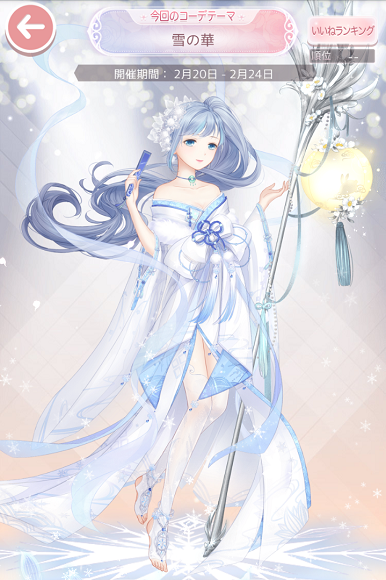 コーデお題「雪の華」 お題2018上 2018年02月22日 Comment:0 ついTwitterで発表してしまいましたが… 常世の鬼琳さんと幼馴染のよしみで深染ちゃんコーデしてみたくなりました。 Altoroseさんと被ったら間違い探しのようで面白いだろうなと…あえてw 銀髪ポニーテールを入荷したので差し替えようと思っているのですが 順位が現在Top20%台…替える必要のないまま終わってしまいそうだ…。 さてセルフィでの雪の華コーデは… やはり深染ちゃんをお借りして、ニキコーデに似せる試み。 『うる星やつら』のおユキさんをコスプレしたいところなのですが 深染ちゃんとの違いをつけることが難しいんじゃないか…と思うくらいw ニキでもセルフィでも、なかなかそれらしいアイテムが見つからなくて ワタシの中ではイマイチ出来上がってないんですよね…orz