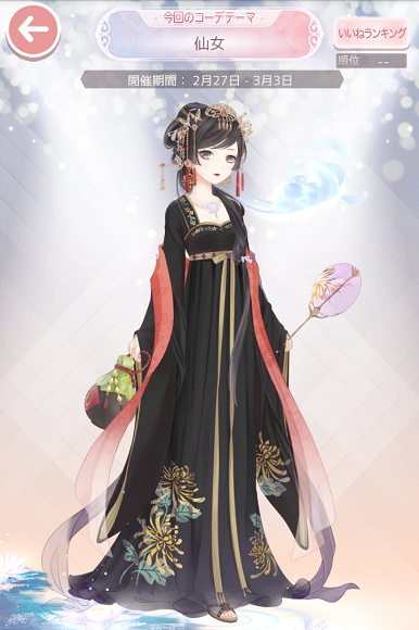コーデお題「仙女」 お題2018上 2018年02月28日 Comment:0 迷う事なく成長して道士から仙女になったウィレンのコーデを考えてみる。 傾向として淡く明るい色合いの服が多く、プレイヤーにも選ばれやすいようなので あえて濃く暗い服をチョイスできたというのも楽しいポイントでした。 ニキはこういったクラシックチャイナ系衣装がとても多いので、方々のエントリーも多彩。 個人的な趣味嗜好も相まって、自分にとっては桃源郷のやうなゲームです゚+。:.゚ヽ(*´∀`)ノ゚.:。+゚ 結い上げ髪や装飾品なども描き込みが本格的で、クオリティ高い。 こーいうのが欲しいのに!というセルフィに対する欲求不満をニキで補っています← 履物は納得のいく色・デザインのものが見当たらなかったので あえてエスニックなサンダルで遊んでみました。 全身コーデしていてワタシが一番難しいと感じるのは靴選びです…。 さてセルフィでの仙女魏蓮は… ニキコーデに似た服もあるにはありますが 属性表現にこだわって中華なポーズ付インナーを採用。 いかにも仙女、という感じのする髪が欲しいのですが ワタシの目ではいまだ見当たらない…。 とりあえずロングのポニーテールというのが、ウィレンの最低条件ですなぁ。 そんなワタシは今 映画『空海-美しき王妃の謎-』を観に行きたいと切に考えているのですがっ! 今週は都合が悪かった…orz