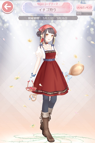 コーデお題「イチゴ狩り」 お題2018上 2018年05月22日 Comment:0 自分で育てた苺を、自分で刈り取ったような雰囲気にしました。 会場は苺イメージのふわふわとしたコーデで溢れ返っていますが ワタシは農作業に適しているようなカントリー風のコーデが好きですね。 エプロンかわいい。頭巾かわいい。軍手かわいい。ブーツかわいい。