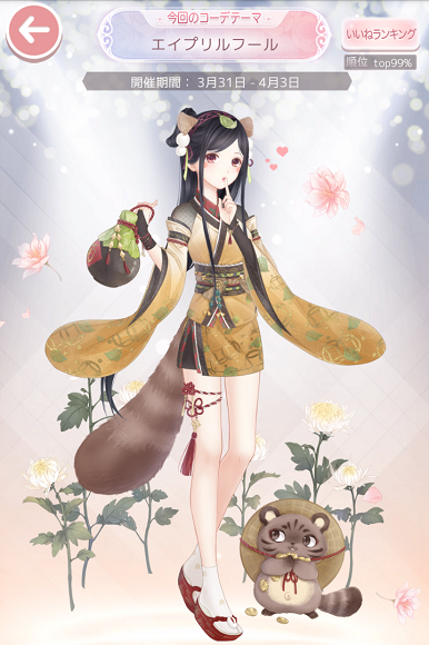 コーデお題「エイプリルフール」 お題2018上 2018年04月03日 Comment:0 3/31~4/3までのお題が「リアルゲーム」で、実はブログ記事もひっそり書いたのですが 4/1のメンテナンス後なぜか「エイプリルフール」に変わっていて… これはサプライズ企画なのか?と思いきや、ミス更新だったらしく お詫びの補填が配布されました。 前のお題に戻さず4/3まで「エイプリルフール」で通すようです。 エイプリルフールにこのやらかしは…わざとなのかうっかりなのか 判別し難いのが面白いと受け容れてしまいましたよ…。 既にTwitterのネタにしてしまいましたが エイプリルフール→嘘をつくのが好きな化け狸を連想してサラジュがエントリー →狸は女体化サラジュに化けました という設定でコーデエントリーし直しました。 何やってるんですかサラジュさん← セルフィでのエイプリルフールコーデも再掲になりますが… パソコン触ってTwitterやってるらしいサラジュさんの図。 企画に合わせてももクロを侍らせる事ができましたし 青い鳥とハートのいいねが我ながらナイスアイデアじゃないかと自画自賛します← 本来こういった通信機器は無いハズなのでエイプリルフールですよー。 しかしながら、AFに発動した サラジュさんの飼い獏…ももクロ擬人化コーデ!企画につきましては 期限がありませんので、覚えていたらこちらへリプ投稿いただければ幸い。 サラジュさんに見せて感想コメントもらってきますヽ(゚▽゚)ノ →https://twitter.com/kuonraise/status/980098612511195136 私がコーデ披露してしまうと、それが正解のように思ってしまうから 今しばらくは自重。皆が忘れた頃でも~ って、私もコーデするの忘れてしまうんじゃないかと思うんですが(´д`) 以下ネガ発言なのでスルー推奨。 → つづきはこちら