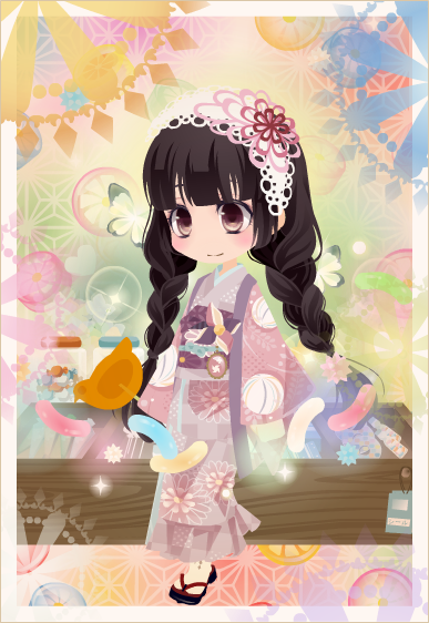 コーデお題「キュートキャンディガール」 お題コーデ2018下 2018年08月20日 Comment:0 不得手そうなお題が来ましたよガクブル← 自キャラに当てはまりそうな女子は居なかったです(とおいめ) 即興の女の子で飴屋のお嬢さん、という風に仕上げました。 和風ならモチベーションが上がると思ったのでした。 ジャッジ、やる気出てきた…って言ってましたが 多忙なのとハードル高そうなのとでサボってます(´д`;) 他イベントは貯めた回復ドリンク使ってガッとやり込みできますが ジャッジは自然回復待ちで稼がないと…そんなチマチマやってられないので途中棄権orz