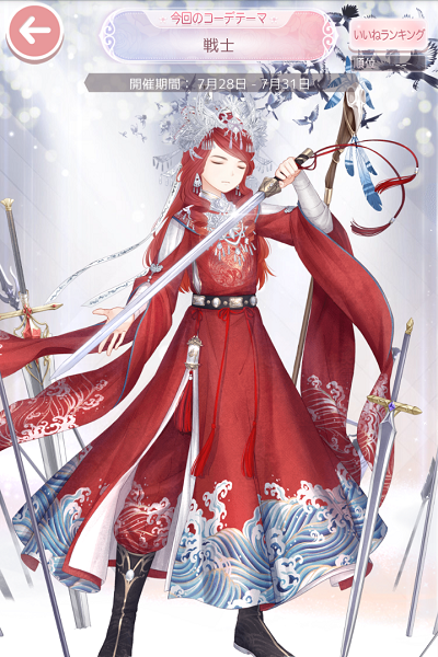 コーデお題「戦士」 お題コーデ2018下 2018年07月30日 Comment:0 ポーズ付きドレスでコーデもへったくれもありませんが(-_-;) やっぱこの、剣を構えている姿が好きなの…! 紅樹をモデルに出陣させました。 ちっとはコーデを楽しみたいと装飾品を工夫してみましたが、やはり官帽の方がサマになる…。 デフォルトのトータルコーデには及ばないと思いました。 セルフィでこのような感じの服が作られない事に業を煮やして 「中華戦士服 赤」の色違いの青を今になって取り寄せてみたのですが やっぱり前々からそう感じて一向に入手しなかった通り…このカラーリングは使いづらいです。 納得のいくカラー違いのシンメトリーコンビを作るのは難しいorz アトゲは週2ペースでガチャをリリースしているというのに このような感じの服はおよそ唯一無二だというのが…いい加減ココロ折れそうですorz 唯一無二と思うがゆえに、サラジュの虹環祭衣装=双樹のデフォ衣装になったのですよね。 華印国の官服であり正装であるから同じ服なのだ!と決めたものの 他に似たような服があれば別々にしていた筈なんですよ…。