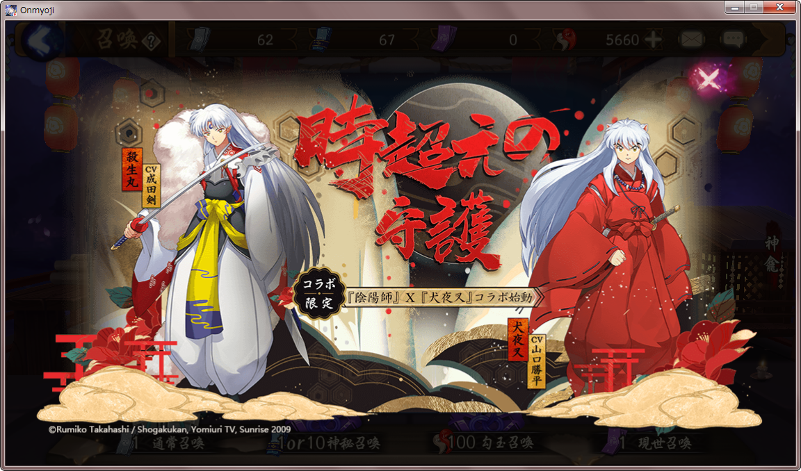 殺生丸様は前回召喚出来たのでともかく、犬夜叉の欠片が入手できないのが地味にツライ。