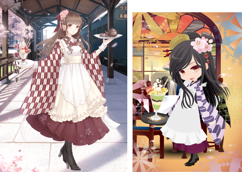 コーデお題「大正ロマン」 お題2017 2017年09月13日 Comment:0 手に持たせるアイテムで方向性が決まりました。 鳳凰騎警団(ユーザーイベント『大和乱戦』)に居そうなコーデになりました。 BGMは『檄!帝国華撃団』 …そこら辺りを意識したコーデという事で。 『大和乱戦』の自キャラといえば芙蓉さんなんですが、悪の組織側でして… 黒蜥蜴みたいな恰好で出しても明らかに苦戦するだろうと棄権しましたw さてセルフィでの大正ロマンコーデですが… 焦点が絞りにくいので、ニキの現行イベントのまねっこコーデをしてみました。 ※イベント画面のトリミングです。 ※セルフィのモデルは自キャラどす。 ランキング報酬品と、そのまねっこ。 こんなにコノハさんなんだから一式欲しいのですがっ…! ヘタレなので多分無理だと思います。青天井で出費が定まらないのは好かんのだよ。 ポイント報酬品(初級)と、そのまねっこ。 灯月さん(男)が着てくれた…だと!?ww こちらのセットは既にgetしておりまして… コノハさんに服着せたらこうなりました。 非常に可愛いのですが、エプロンが取り外しできなくて残念なの…。 ニキでも灯月さん作って着せたいですが…顔がサラジュさんと全く同じになりそうだという。 ポイント報酬品(上級)と、そのまねっこ。 貴重な男物です。こちらも大分獲りました。 猫も杓子もサラジュさんに着せます。 ニキサラジュさんの場合はこんな感じだ。 革靴じゃなくて下駄がよかった!と、セットコーデ崩すマン。 お金チャージ品と、そのまねっこ。 学ランに坊主頭は似合うぜ!と、九条(無性別)に着せる。 迷いに迷いつつ…チャージは見送る事にしそうなドケチどす← 課金って一度慣れると癖になりそうで、怖いんですよね。 なので出来得る限り厳しく見つめて要らないと思うようにしています。 120円だったら迷わず課金するのになぁ(遠い目) 顔がサラジュに似ているかどうか!というのが最大の迷いポイントなのですが、どうなんだろう…? ちょい童顔かなと感じているので、今使っているのでやり過ごしてもいいかな~と今の所思っております。 これだけセルフィでアイテムを探し当てられたというのが我ながらすごいと思う (やり切った感に包まれている)
